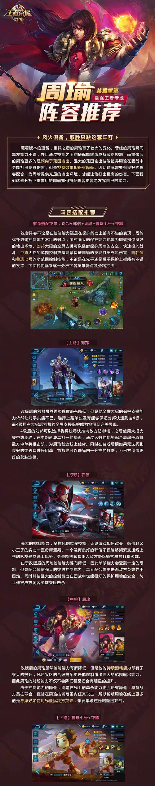 周瑜在团队中与控制英雄的搭配效果非常好,可以有效地控制敌方的行动。对于坦克型英雄,周瑜有一定的克制作用,可以对其进行高输出。