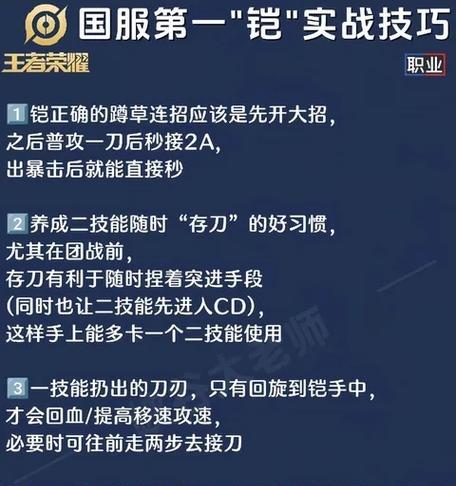 铠的高爆发伤害是他的一大特点,职业选手应该合理运用技能和装备来提升伤害输出,并在合适的时机击败敌人。