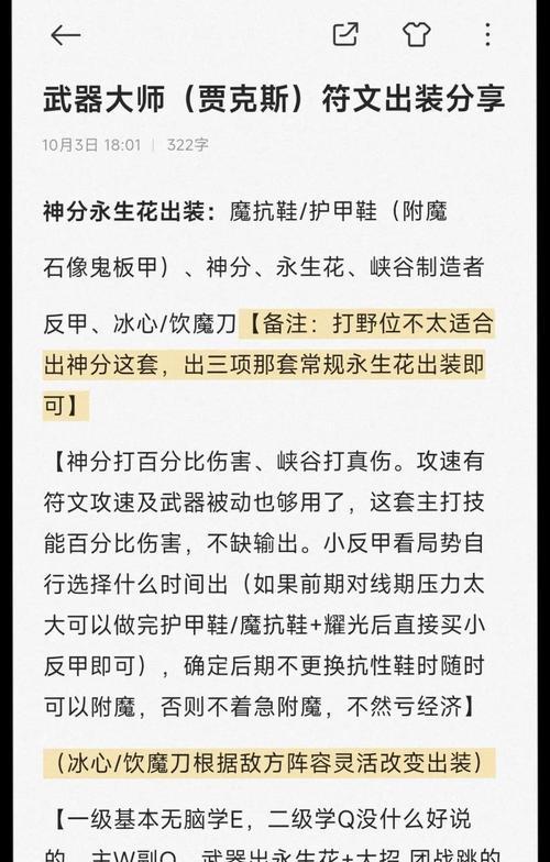 在《英雄联盟》这款游戏中,弹药是一个极具特色的英雄,其独特的技能和出装加点策略给玩家带来了不少挑战。本文将为大家详细介绍弹药的出装建议以及技能加点策略,帮助玩家更好地掌握这个英雄的操作。