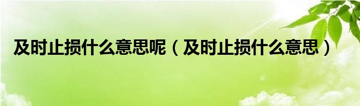 及时止损什么意思呢(及时止损什么意思)